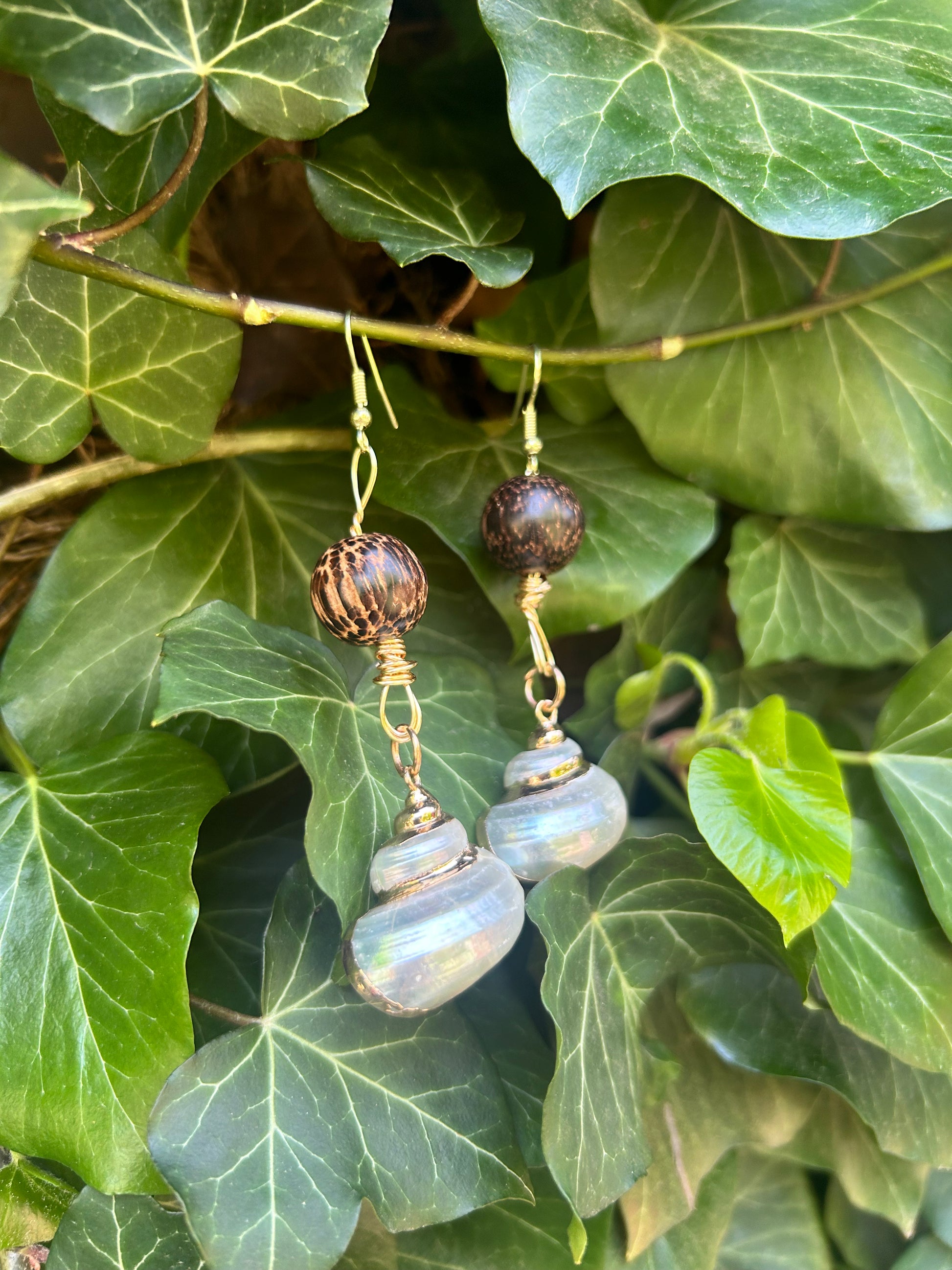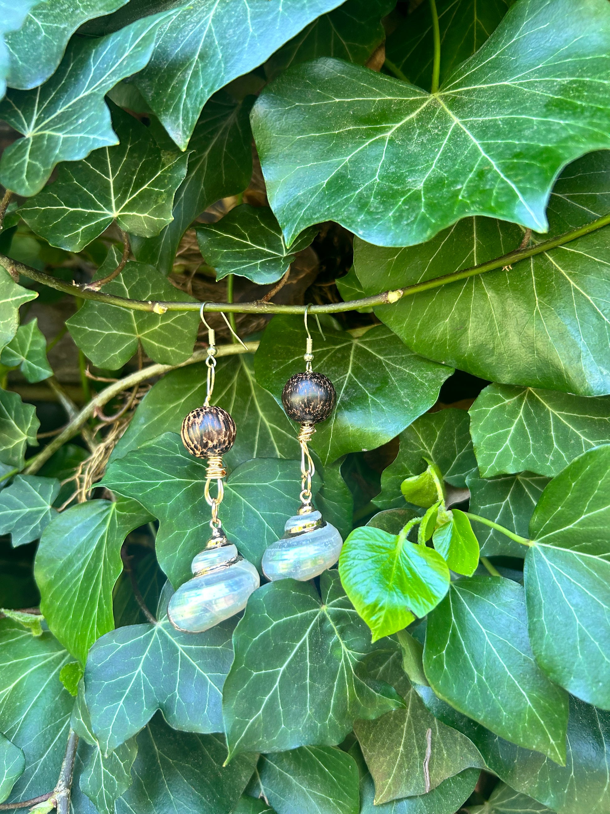 little mermaids dad but as earrings with a wooden bead to top it off